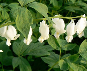 Elegant and serene. Bushy, perennial with medium green, ferny foliage set with strings of pure white, heart-shaped blooms. A wonderful plant in a woodland setting, planted with ferns and primroses. Easy to grow in sun to partial shade, in moist, fertile, well-drained soil. Foliage will yellow and die back in hot, dry summer conditions. HEIGHT: 60-80 cm SPREAD: 40-60 cm